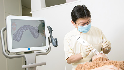 歯列矯正も日進月歩です。技術も装置も機器も革新し開院時は不可能であったことが可能になってきたこともあります。その一つが口腔内スキャナ(iTero Element)です。これは口腔内を高速に撮影して歯型を3D画像データとして保管できます。従来の歯型を取る方法より短時間で済ませることができ、口腔内に入れる部分は従来の物より小さく患者様のご負担を軽減できます。撮影した3D画像データは極めて正確なものとなり、取得したデータは歯科矯正装置の設計・作製に用いることが出来ます。