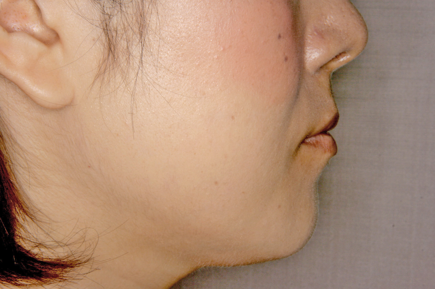 受け口を気にされて来院された成人女性です。骨格性の重度な受け口であり、上下の前歯がかみ合わない(開咬)状態であったため上下顎骨の外科矯正手術を併用してかみ合わせを改善しました。反対咬合はもちろんですが、下唇の前突感もあわせて改善することができました。エシックスで保定に移行いたしております。