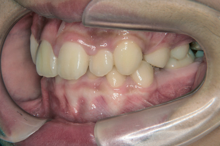 出っ歯を気にされて来院された8歳の女の子です。ヘッドギアーと床装置で上顎の拡大とバイヘリックスで下顎の拡大を図りました。経過観察後に非抜歯でエッジワイズ装置を用いて配列を行いました。拡大処置4年程度、後期5年程度で治療いたしております。