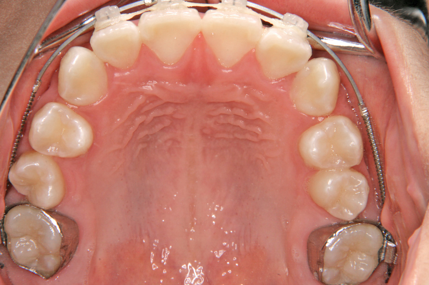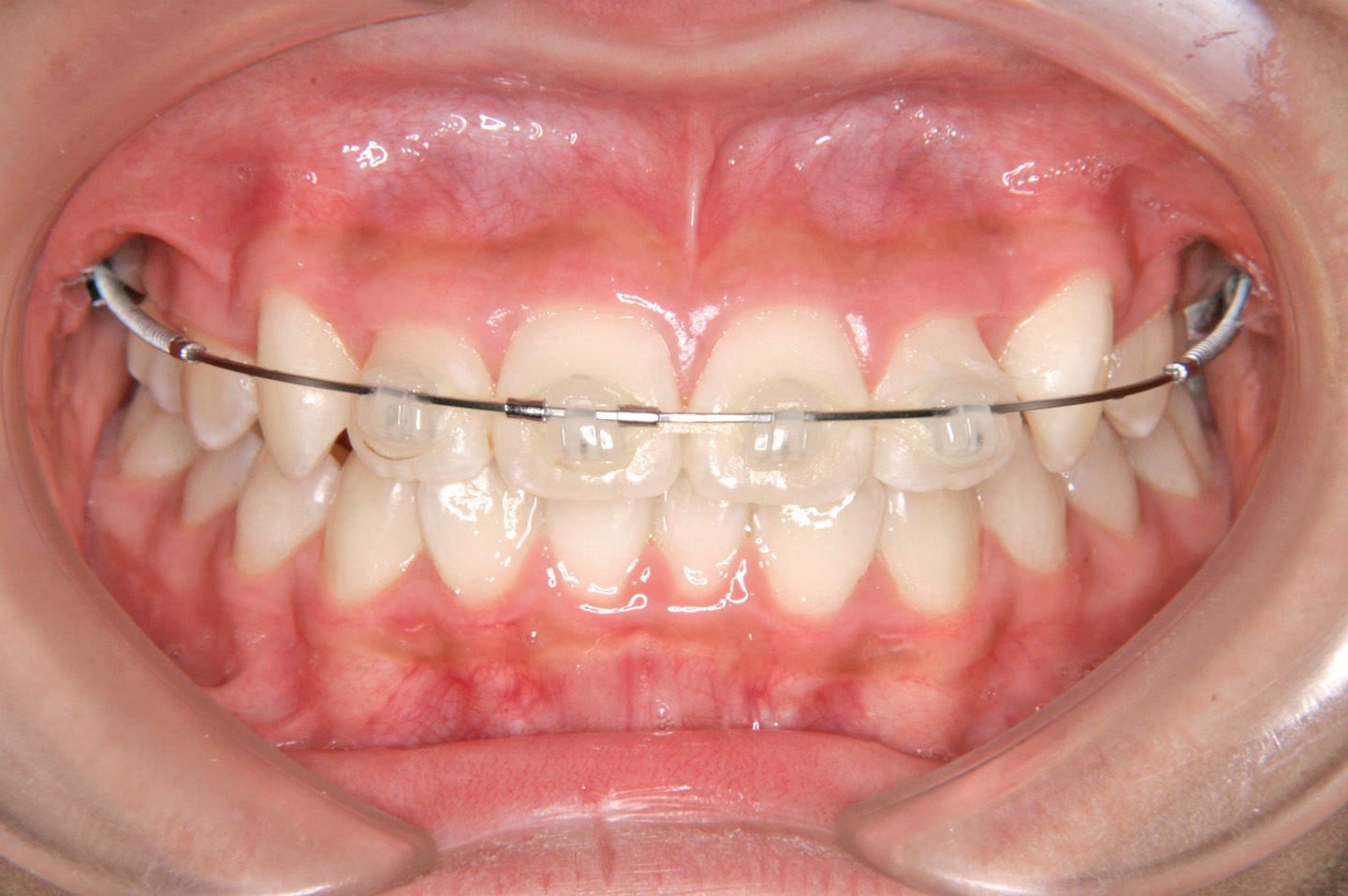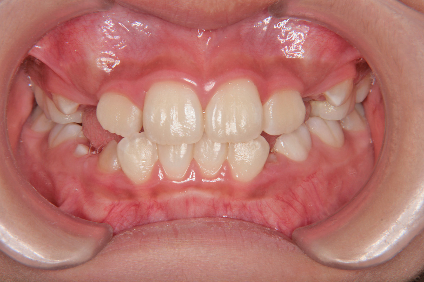 初診時、骨格的な問題は少なく、前期治療では上下の永久歯が並ぶスペースを獲得するため、ヘッドギアー装置とセクショナルアーチ装置を用いました。後期治療として非抜歯の上、デーモンシステムによるエッジワイズ治療を行いました。現在は、リテーナーとボンデッドワイヤーによる保定期間に移行しております。